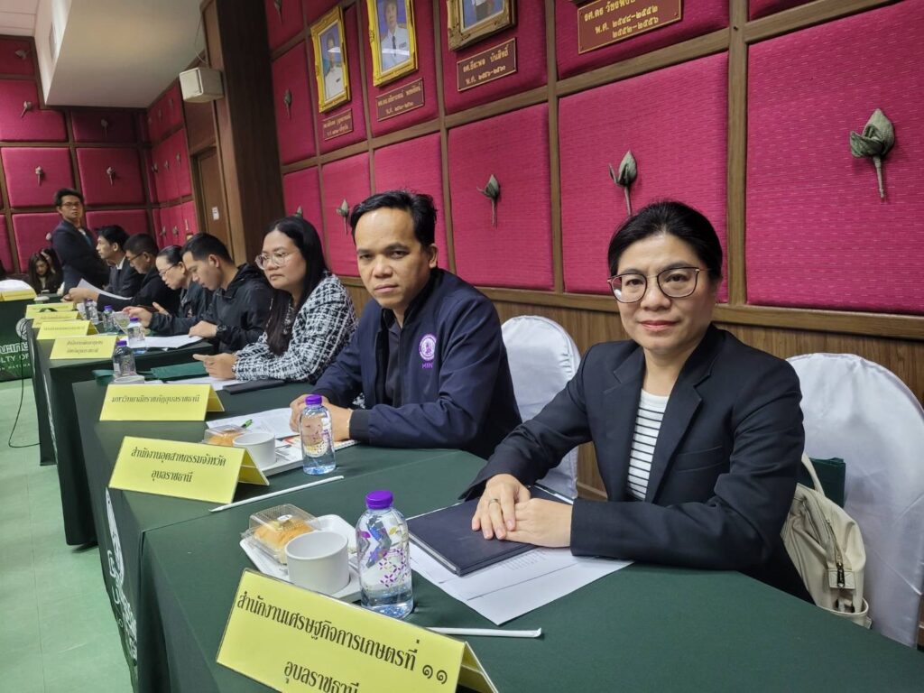 นางสาวรักชนก ทุยเวียง ผู้อำนวยการสำนักงานเศรษฐกิจการเกษตรที่ 11 อุบลราชธานี (สศท.11) มอบหมายให้ นางสิราภรณ์ เธียรโพธิ์ภิรักษ์ ผู้อำนวยการส่วนสารสนเทศการเกษตร เข้าร่วมประชุมเตรียมงานเกษตรอีสานใต้ ประจำปี 2569 : ณ ห้องประชุมวรพงษ์ สุริยภัทร คณะเกษตรศาสตร์ มหาวิทยาลัยอุบลราชธานี