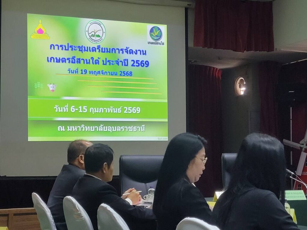 โดยมีร้อยตรีสรมงคล มงคละสิริ รองผู้ว่าราชการจังหวัดอุบลราชธานี เป็นประธานในการประชุม โดยการจัดงานเกษตรอีสานใต้ ประจำปี 2569 มีวัตถุประสงค์เพื่อเผยแพร่ความรู้ความก้าวหน้าทางด้านเทคโนโลยีและนวัตกรรมทางการเกษตรของหน่วยงานภาครัฐและเอกชน ให้แก่เกษตรกร นักเรียน นักศึกษาและผู้สนใจ